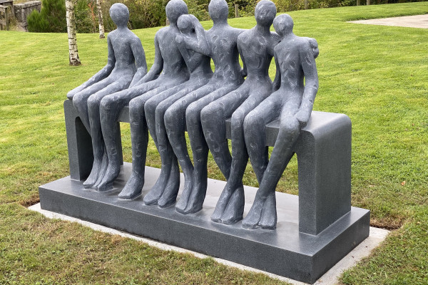 This unique black granite sculpture has been hand carved to depict 6 friends sitting on a bench. The overall dimensions of this modern sculpture is 1380mm high x 2040mm long x 700mm front to back. This would be a wonderful addition to the garden area of any business or house. The normal price for it would be £15,350 including vat but our special website promotional price is £10,500. If you are interested, please complete the contact form.